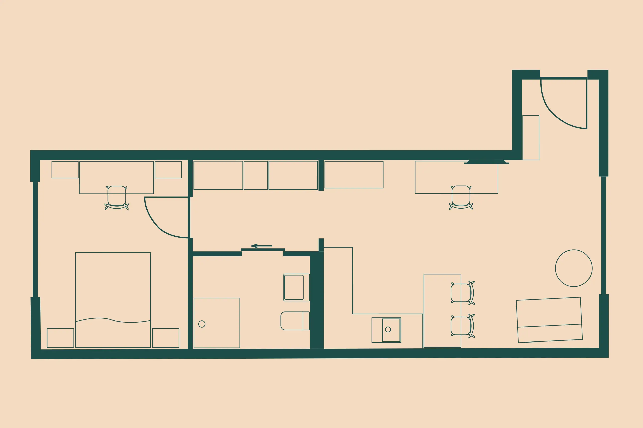 Dieser Apartmenttyp bietet dir alles, was du brauchst – in smarter Form. Dank durchdachter Einrichtung mit cleveren Stauraumkonzepten nutzt du jeden Quadratmeter optimal aus. Ideal, wenn du viel unterwegs bist, Wert auf Funktionalität legst und trotzdem stylish wohnen willst. Weniger Raum, mehr Freiheit.